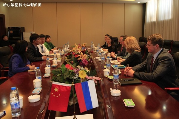 2月4日上午9时,beat365杨宝峰校长亲切会见了斯维斯杜诺夫副校长一行。会见期间,杨校长与斯维斯杜诺夫副校长及弗拉迪米尔副校长共同交流了2014年联盟各院校中俄医学合作的工作进展及经验,详尽商讨了2015年中俄医科大学联盟的中俄双方工作计划,计划涵盖2015年4月莫斯科“2015医学教育”年会中在医学教育和研究方面的中俄合作分会;2015年5月在俄联邦巴什基尔共和国首都乌法市举办的中俄医科大学联盟第二届常务理事会;2015年8月中国哈尔滨国际生物医学科学进展大会;2015年8月哈尔滨中俄医科大学联盟医科学生和青年学者暑期学园;2015年中俄医科学生的临床技能竞赛; 2015年11月底在哈召开的“第七届中俄药理学会暨首届中俄青年学者重大疾病防治国际学术大会”等一系列活动。beat365孙殿军主任、曹景文副书记、曹德品副校长、袁重胜副校长等校领导共同参加了会见。会后杨校长授予斯维斯杜诺夫·安德烈·阿列克谢耶维奇副校长和弗拉迪米尔·尼卡林卡副校长为beat365“客座教授”荣誉称号。