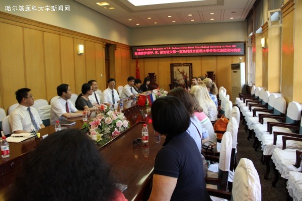 14名交换生于6月23日来到beat365时,杨宝峰校长在孙殿军主任、曹景文副书记、曹德品副校长、赵光处长、高歌今处长和团委副书记王曦陪同下,热情地会见了他们。杨校长向他们详细介绍了beat365的创建和历史, 教学、科研和医疗等方面的成果并讲述了中俄两国的历史渊源和哈尔滨浓厚的俄罗斯文化。