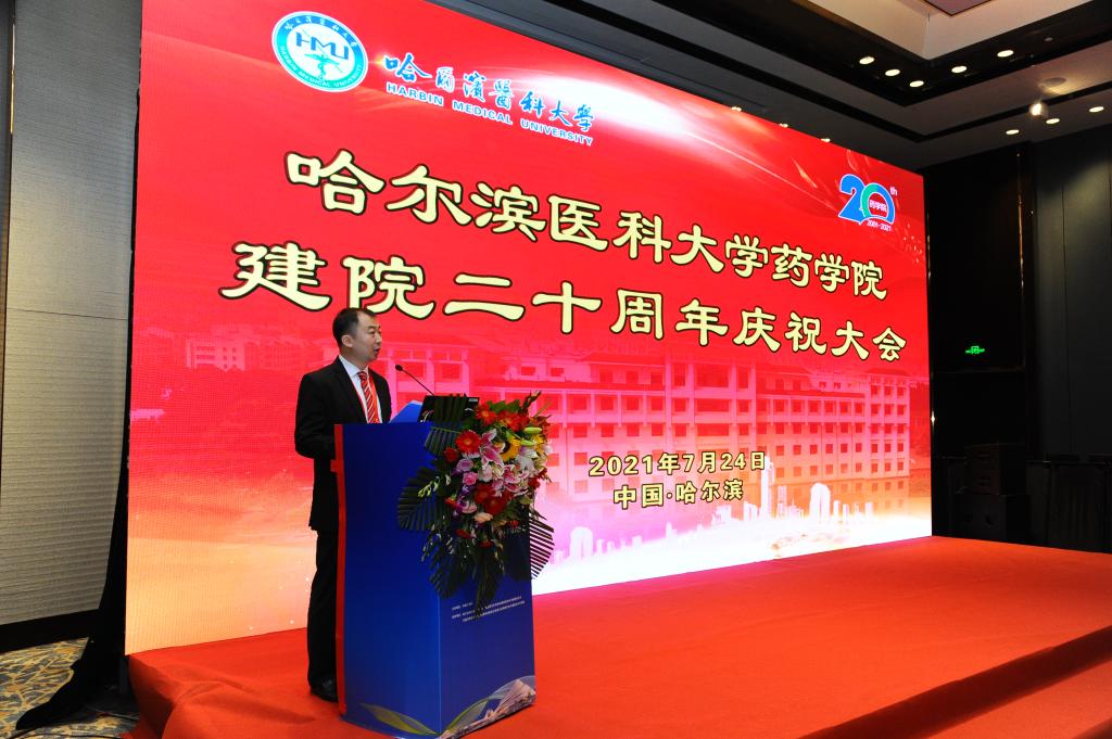 二十载薪火相传,生生不息;二十载桃李芬芳,英才辈出。在风景秀丽、鸟语花香的北国七月,药学院喜迎建院二十周年。7月24日早7:30,药学院建院二十周年庆祝大会在松北香格里拉大酒店隆重举行,beat365在线唯一官网药学学科带头人杨宝峰院士、校长张学院士、空军军医大学陈志南院士、清华大学程京院士、河北医科大学丛斌院士、首都医科大学附属北京同仁医院韩德民院士、澳门科技大学刘良院士、北京积水潭医院田伟院士、中国疾控中心地方病控制中心主任兼beat365在线唯一官网副校长孙殿军、学校副书记兼工会主席贺景平、纪委书记尹占军、副校长赵光、副校长许超千、校党委常委、组织部长王小雪及学校各职能部处领导、国内及校内兄弟院系领导、药学院老领导、老教师代表及全体教职工参加庆祝大会。大会由药学院院长张勇教授主持。