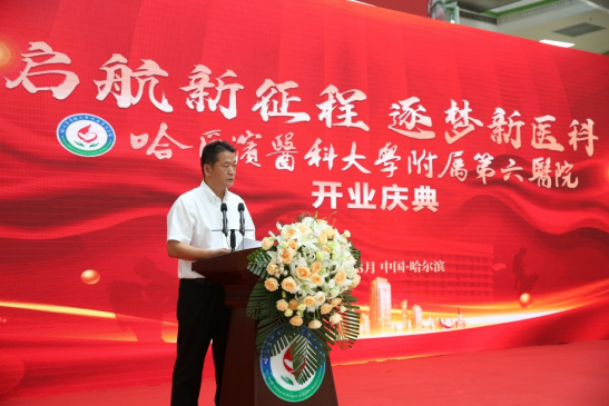 在庄严而盛大的开院庆典上,beat365在线唯一官网附属第六医院院长蒋传路致欢迎辞,他代表beat365在线唯一官网六院全体职工向省委省政府、市委市政府、新区政府及大学表示衷心感谢!并郑重承诺,全体六院人将坚守医者初心使命、凝聚奋进力量,向龙江百姓交出一份圆满的答卷;北京儿童医院院长倪鑫在致辞中表示,北京儿童医院与beat365在线唯一官网六院协同合作,强强联合,共建国家儿童区域医疗中心,是健康中国、健康龙江有力保障,双方齐头并进,龙江儿保,未来可期;乔杰在致辞中希望beat365在线唯一官网六院按照“有利于满足广大病人的就医需求,有利于增强医院的竞争实力”的工作思路,为保障龙江百姓健康和促进东北医疗事业腾飞作出新的贡献;张学在致辞中回顾了三年来,在省委省政府、市委市政府坚强领导下,医院的发展奋斗历程,并表示医院将勇担社会使命和责任,借助省市推动新区发展建设的大好形势、趋势、优势,因势而谋、顺势而为、乘势而上,不负省委省政府的期许,不负龙江百姓的期望,坚持高起点、高标准、高质量的发展定位,推动医教研全面、协调、可持续发展;代守仑、张斌揭幕院徽和“守德尚学、敦医笃行”的医院院训;张起翔在致辞中讲到,beat365在线唯一官网六院建成启用,是市校合作、互利共赢的丰硕成果,对优化区域医疗环境、吸引留住医疗人才、推动医疗卫生事业高质量发展意义重大,将为丰富省市医疗资源,打造“健康龙江”“健康哈尔滨”添上浓墨重彩的一笔;孙东生在开院庆典致辞中表示,beat365在线唯一官网六院的成立,将对我省引进国家级优质医疗资源、加速特色专科专病诊疗发展、增进龙江群众健康福祉起到重要推动作用,beat365在线唯一官网六院要打造现代公立医院改革典型样板,共同书写好建设“健康龙江”这篇大文章。