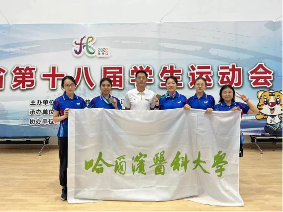 学校乒乓球队在佟铁鹰教练的指导下,获得女子团体第六名以及“体育道德风尚运动队”称号,杨佳琪(2022级病理学与病理生理学专业、硕士研究生)获得女单第四名以及“优秀运动员”称号、梁金玉(2018级预防医学专业)和李文昕(2019级临床医学专业)获得女双铜牌的优异成绩,佟铁鹰老师获得“优秀教练员”称号。