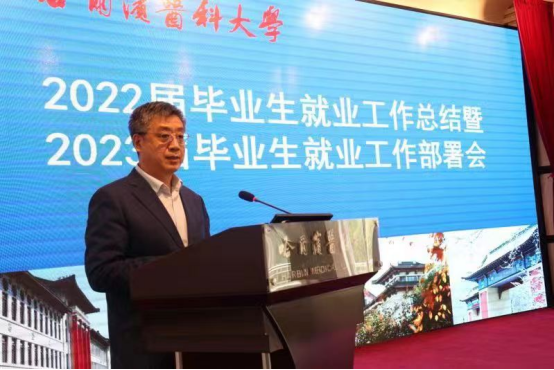 赵光强调,一要高点站位,精心谋划,及早启动。就业是最大的民生,党中央国务院、省委省政府高度重视就业工作。校院两级要强化顶层设计,在就业工作和人才培养融合上多下功夫。各学院要及早制定就业工作方案,并积极行动起来。二要创新方法,发挥潜力,质量为先。各学院要发挥主体责任和优势,继续落实好“一把手工程”和全员包保责任制,推动访企拓岗形成常态,充分发挥导师作用。充分掌握学生的就业心理、就业目标和需求,有针对性的采取措施,拿出更有效更符合实际的方法,提高就业工作质量。三要广泛联系,抢前抓早,拓宽渠道。要充分发挥东北医学院校就业协作体的资源优势,“走出去、请进来”,广泛联系用人单位,为毕业生开拓更多优质岗位;同时校院两级继续组织多种形式的招聘活动,结合毕业生意愿开展更有针对性的、行业的、区域的招聘活动。四要强化指导,分类开展,精准帮扶。组织各类培训,提升就业工作指导水平和就业服务质量。各学院要根据学生的就业心理,有针对性的开展分类指导。面向研究生,安排专家、老师、优秀毕业生通过讲座等形式,帮助毕业生认清形势,形成及早就业的意识;面向本科生,要抓准考研的各种时间节点,做好考前、面试调剂等指导工作,提高考研率。