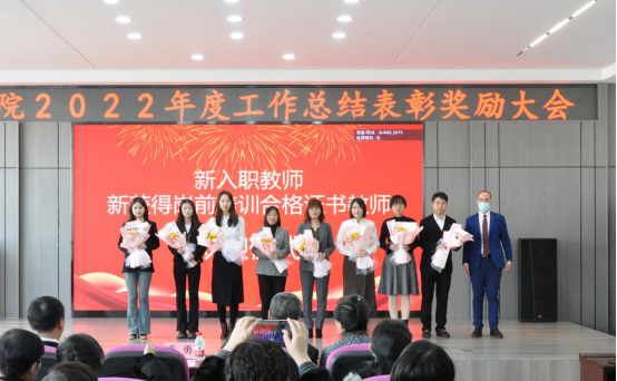 谢良军副院长为新入职教师和新获得岗前培训合格证书教师献花