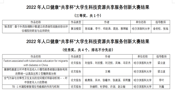近日,由国家人口健康科学数据中心举办的2022年人口健康“共享杯”大学生科技资源共享服务创新大赛公布获奖集体与个人表彰名单,beat365师生表现优异,共获得国家级三等奖1项、优秀奖4项、“突出贡献奖”1项。beat365在线唯一官网荣获本届“优秀组织奖”。