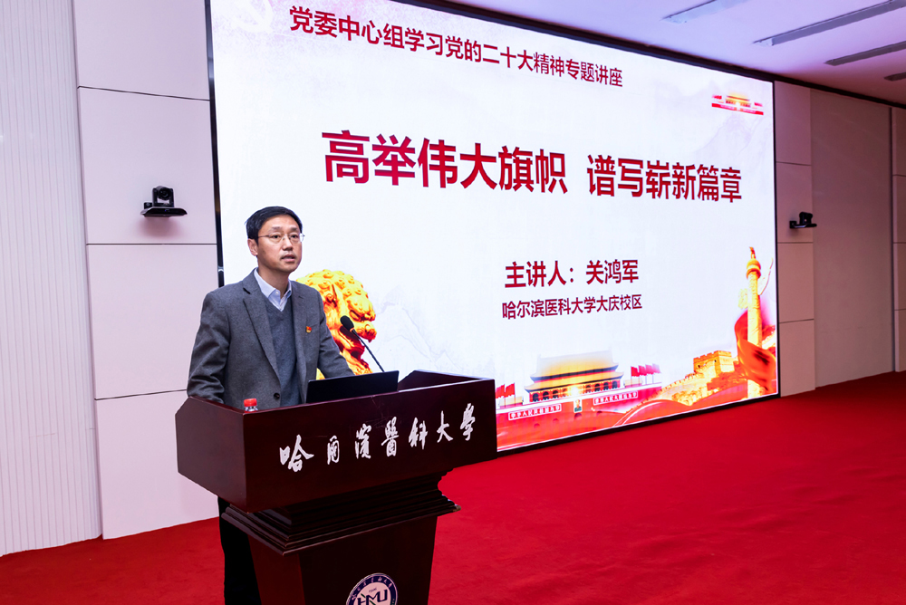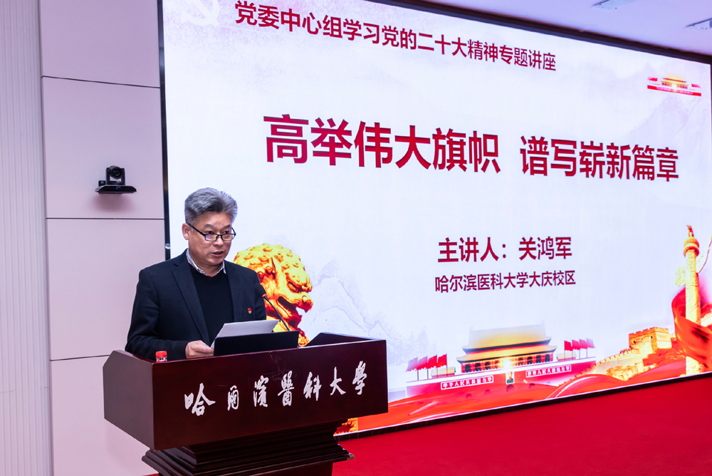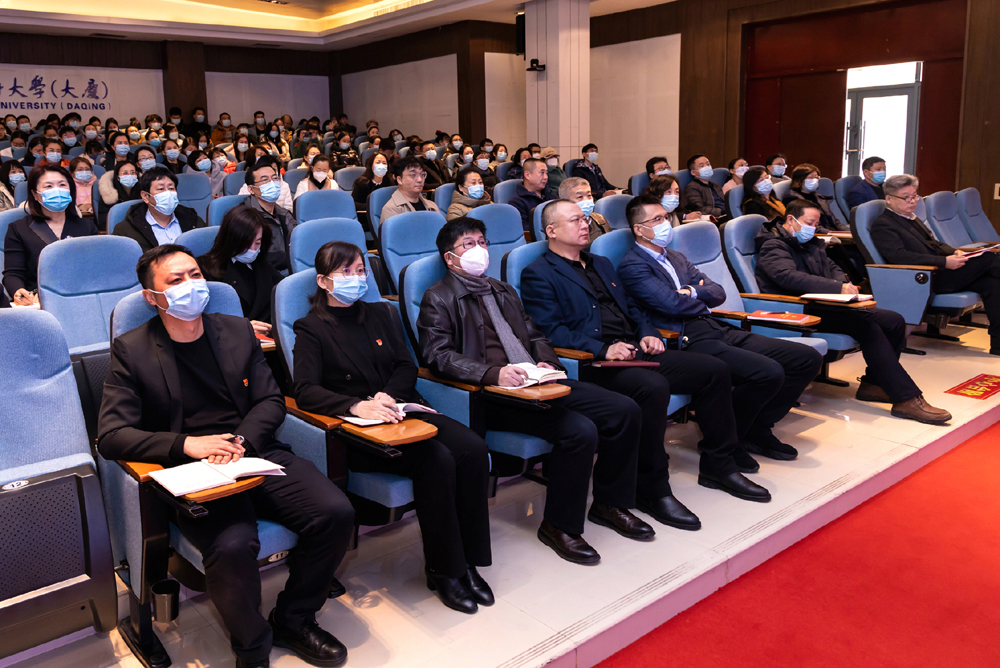 3月15日下午,大庆校区召开党委中心组(扩大)理论学习会,校区宣讲团成员、党委宣传部部长、办公室主任关鸿军作《高举伟大旗帜 谱写崭新篇章》专题宣讲。校区党委书记孙瑞岐、校长乔远东等校区党委中心组成员,各单位党政负责人,基层党支部书记、副科级以上干部、各民主党派负责人、教研室(实验室)主任、辅导员、宣传员、思政课教师、部分党员教师和学生党员代表参加会议。校区党委副书记李国军主持会议并作总结发言。
