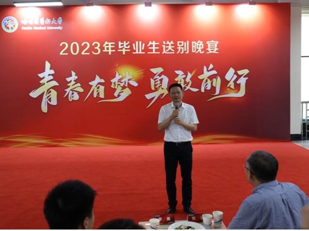 党委书记张学在致辞中满怀深情的说,2023届的同学们是生于千禧之年的一届,是战胜疫情挑战的一届,是开启新医科教育征程的一届,是经历国家新时代伟大变革的一届。来到校园,同学们勤奋求实,励志创新,取得了许多优异成绩,学校和老师由衷为大家高兴。同学们随学校发展,学校伴同学们成长。走出校园,同学们代表了母校的形象和风貌,更要以永不懈怠的精神状态、永不停滞的前进姿态,努力成为行业骨干、青年先锋,展现出新时代中国青年和哈医学子的使命担当。与毕业生一起包饺子、吃饺子,已经成为学校的传统和文化,饱含了学校对同学们的期待与祝愿。希望大家能够永远记住学校的味道、学校的情怀。无论是三年后的百年校庆,还是毕业十年团聚,同学们要常回家看看,逛逛明心湖,看看新校区,我们在学校期待大家成功的喜讯。