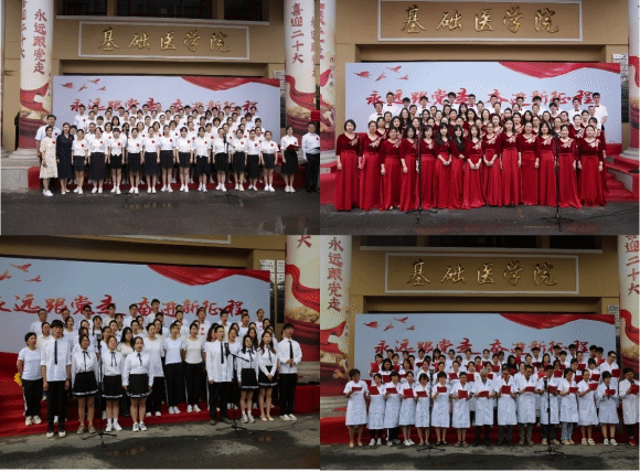 为庆祝中国共产党建党102周年,全面贯彻落实党的二十大精神和习近平新时代中国特色社会主义思想,6月27日下午,基础医学院举办“永远跟党走 奋进新征程”师生合唱汇演。基础医学院党委书记金焰致开幕辞。