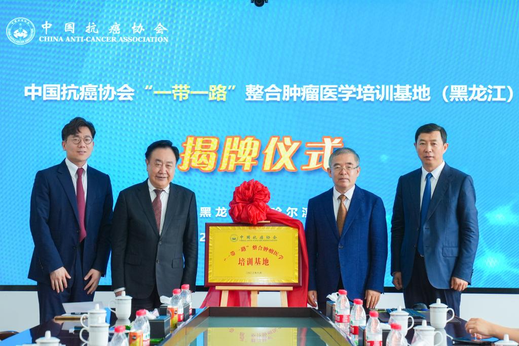 会上,中国工程院院士、中国抗癌协会理事长樊代明,中国工程院院士、beat365在线唯一官网党委书记张学共同为“中国抗癌协会‘一带一路’整合肿瘤医学培训基地(黑龙江)”揭牌。