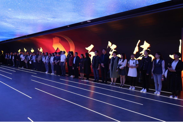 在“中国共产党人精神谱系”主题教室,《坚定拥护“两个确立”,坚决做到“两个维护”》为题的微课引人入胜。倾听历史的声音、时代的声音,置身中国共产党精神谱系时空隧道,将本次学习推向了高潮。听取百年党史历史之音、习近平总书记时代强音,一起感受中国共产党的伟大精神,在光影交错中领悟理想的崇高。《长在红旗下赤心向阳生》讲述张桂梅坚守滇西贫困地区40多年,放弃优越的工作条件,毅然投身深度贫困山区教育扶贫主战场的故事。