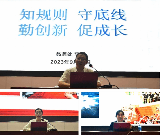 教务处副处长李勇、团委副书记马文超、学生处副处长赵春辉分别为新生讲座,围绕日常学习生活悉悉相关内容,涵盖规章制度、学籍管理、互联网+大学生创新创业大赛、挑战杯、智慧团建、青年大学习、第二课堂成绩单、学生日常管理、奖惩助贷、心理健康教育、生涯规划、新生适应、综合素质提升等,使同学们认识到大学管理模式的变化,要以良好的心态积极适应,引导新生有目的、有计划的开始大学生活。