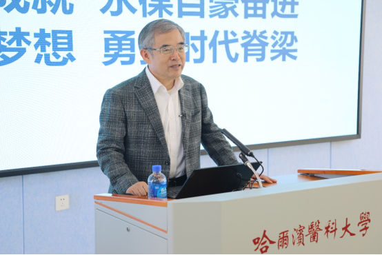 潮起江天阔,扬帆有东风。张学号召广大师生,要把学校的精神文化传承好,接好“接力棒”、跑好“接力赛”,持续推进学校“双一流”和百年医学强校建设。百年校庆之时,期待同学们以优异成绩与学校共同迈向新的时代。伴随着建校百年倒计时1063天,伴随着“新哈医人 加油!”的勉励声,教室响起了持久热烈的掌声。