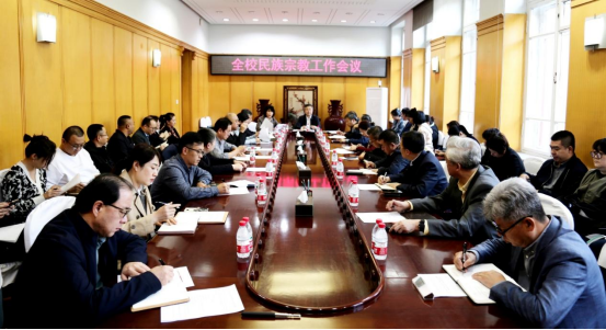 会上,袁重胜分析了当前面临的形势,带领大家集中学习了相关法律法规和应知应会内容,并就进一步做好民族宗教工作提出具体要求。他指出,各党委要高度重视民族宗教工作,提高认识、统一思想,将民族宗教工作作为首要任务来抓。他强调,一是要充分发挥联席会议机制作用,把预警预案转化为切实有效的沟通措施;二是要强化教育引导,把民族宗教工作纳入思想政治工作重要内容;三是要把握原则,做好精准施策;四是要兼顾发展和安全,为全校政治生态、校园和谐稳定安全的政治环境保驾护航;五是要做好全校民族团结进步创建工作,开展好“石榴花开结同心 携手共筑中国梦”民族团结进步宣传月主题活动,总结好经验,做好典型的宣传报道。