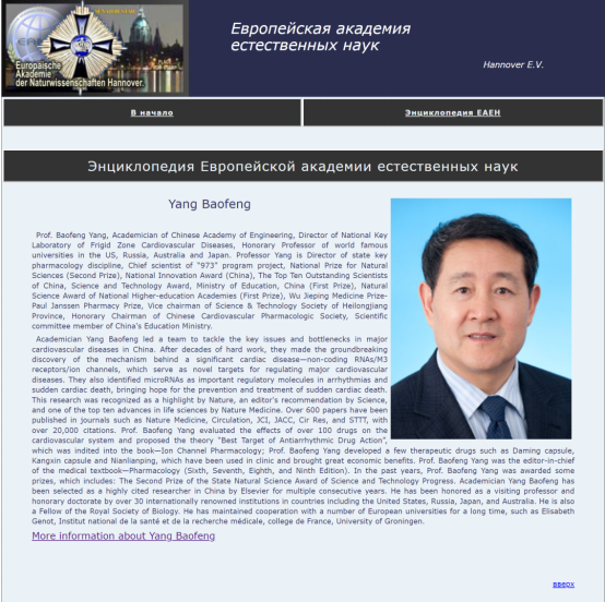 杨宝峰,教授,博士生导师,中国工程院院士。英国皇家生物学会会士,墨尔本大学、日本医科大学、美国西弗吉尼亚大学、圣彼得堡大学等20所国际著名院校荣誉教授/博士。中华医学会副会长、黑龙江省科协副主席、中国心血管药理专业委员会名誉主任委员;心脏疾病研究“973”项目首席科学家,药理学国家重点学科、国家级教学团队及国家科技创新群体带头人,国家教学名师。中国共产党第十七、十八、十九大代表。近日,杨宝峰院士入选2023年版斯坦福大学——爱思唯尔“世界顶尖2%科学家——终身科学影响力排行榜(1960-2022)