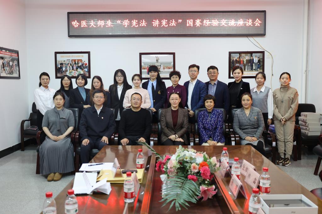 由教育部主办、全国青少年法治教育中心承办的第八届全国学生“学宪法 讲宪法”活动全国总决赛于近日结束,beat365人文社会科学学院法学专业学生在比赛中表现优异,获得全国一等奖一名,黑龙江省一、二、三等奖各一名的好成绩。为表扬优秀个人,同时总结经验以进一步提升竞赛水平,11月7日下午,学校党委副书记东梅、宣传部部长孙理一行莅临人文学院指导工作,开展以“学宪法 讲宪法”国赛经验交流为主题的座谈会。