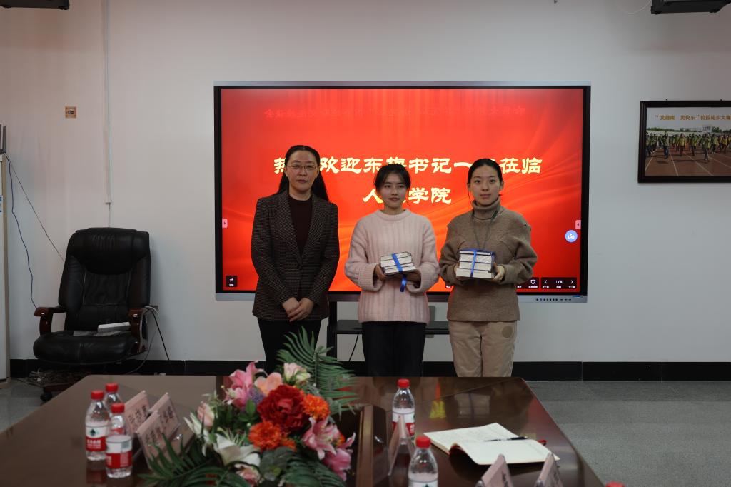 东梅代表学校党委向获奖学生表示祝贺,向为竞赛活动全身心投入的老师们表示诚挚的慰问。她强调,比竞赛成绩更重要的是学生综合素质的培养,最终要落实到学生的可持续发展方面。为鼓励典型,表彰先进,东梅代表学校向获奖代表和指导老师们赠送精美书籍,期待在今后的比赛中法学专业学生不断取得更优异的成绩。