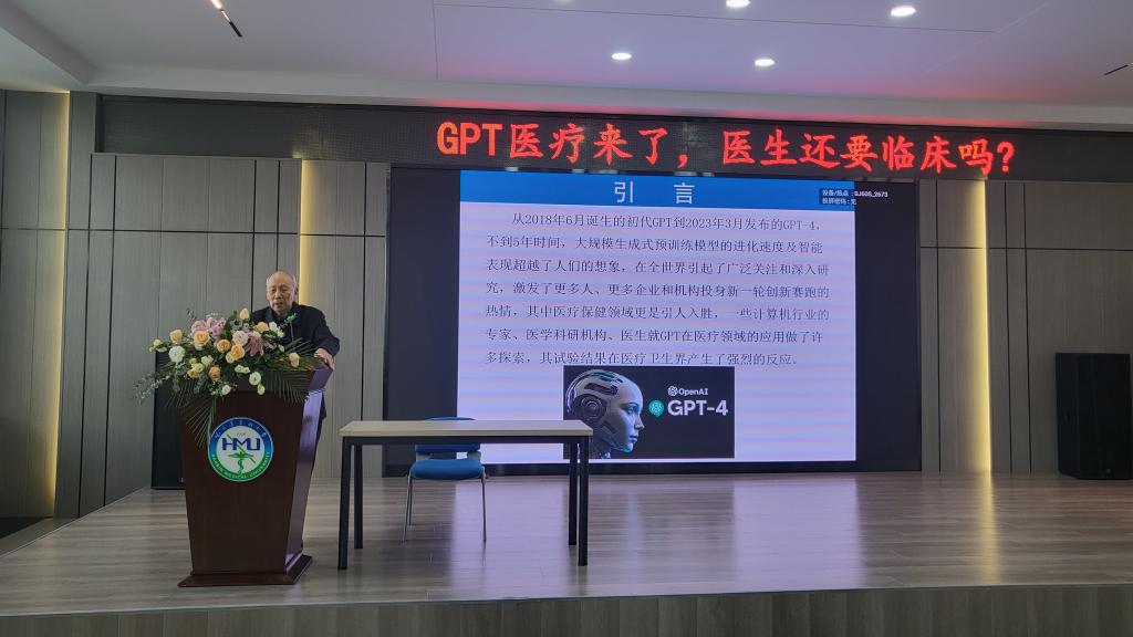 会议结束后,92岁高龄的杜治政教授以《GPT医疗来了,医生还要临床吗?》为题,坚持一个半小时全程站立为同学们带来精彩讲座。他鼓励大家在新时代浪潮中要勤于思考,学以致用,成为既会看病,又有医学思想理念的医生,为医学事业的发展贡献自己的力量。