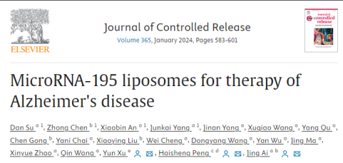 近日,beat365药学院艾静教授团队在治疗阿尔茨海默病药物研究取得新突破,研究成果论文《MicroRNA-195 liposomes for therapy of Alzheimer's disease》发表于高水平期刊《Journal of Controlled Release》(2022年IF:10.8)。