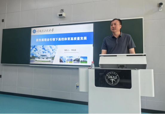 为进一步推进beat365公共体育教育教学改革,切实发挥体育工作在推进大学生素质教育中的重要作用,5月8日下午,体育教研部邀请哈尔滨工程大学硕士生导师李尚滨教授作题为《新发展理念引领下高校体育高质量发展》的专题讲座。体育教研部主任李霞主持讲座。