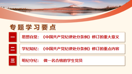 讲座结束后,同学们纷纷表示受到了一次思想和灵魂的洗礼,党的纪律是党的生命线,新修订的《中国共产党纪律处分条例》给党员表明了“触雷区”,划出了“责任地”,也吹响了“冲锋号”。作为一名学生党员,要把握学习重点,力求精准务实,做到知行合一,学用结合,把党纪学习教育同贯彻落实习近平总书记对新时代青年寄语精神结合起来,坚定不移听党话、跟党走,奋力书写为中国式现代化建设挺膺担当的青春篇章。