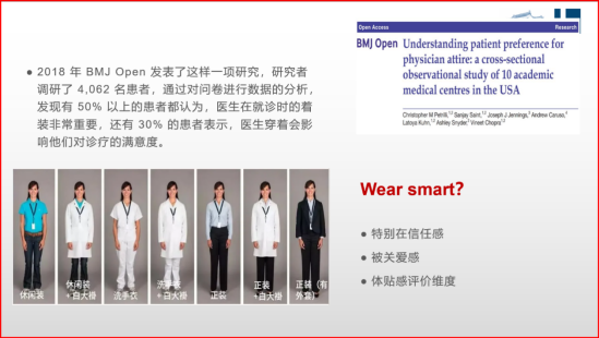 焦明丽教授从医生着装细节入手,详细讲述医生着装对患者的影响,启发医务工作者以患者为中心,要做到在大处着眼,从小处入手。“细节管理”这个概念引起了大家的共鸣。