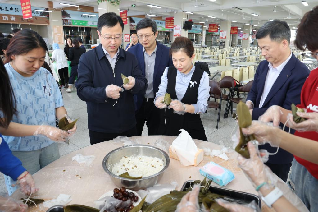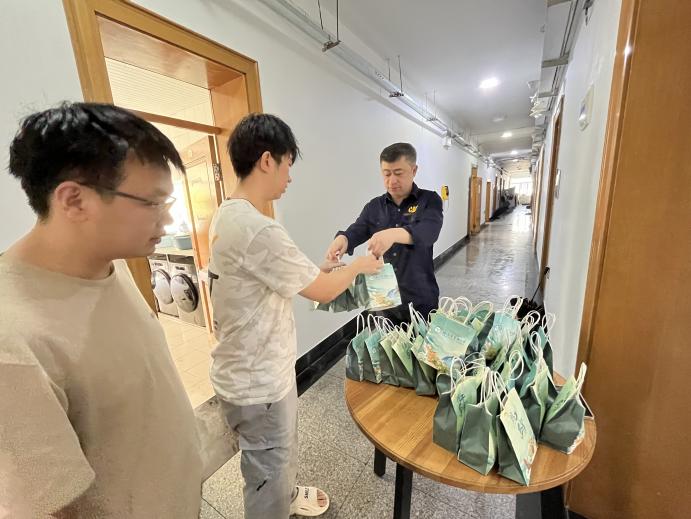 端午节期间,学生饮食服务中心为校本部同学们送上7401份端午礼包,每份包括2个粽子、1颗鸡蛋、1串五彩绳,融入了浓浓的端午粽香,也让同学们感受到了亲切的关怀与祝福。