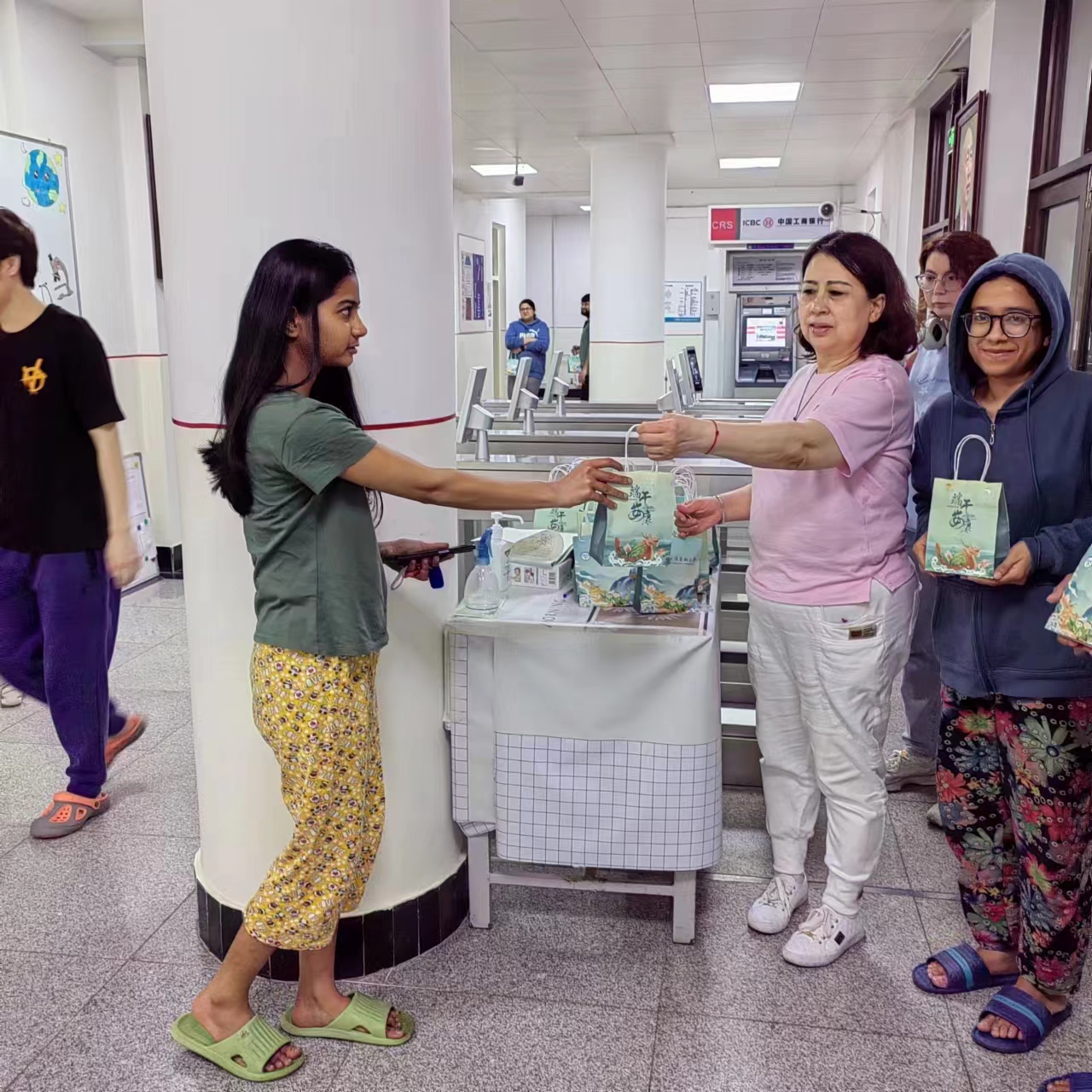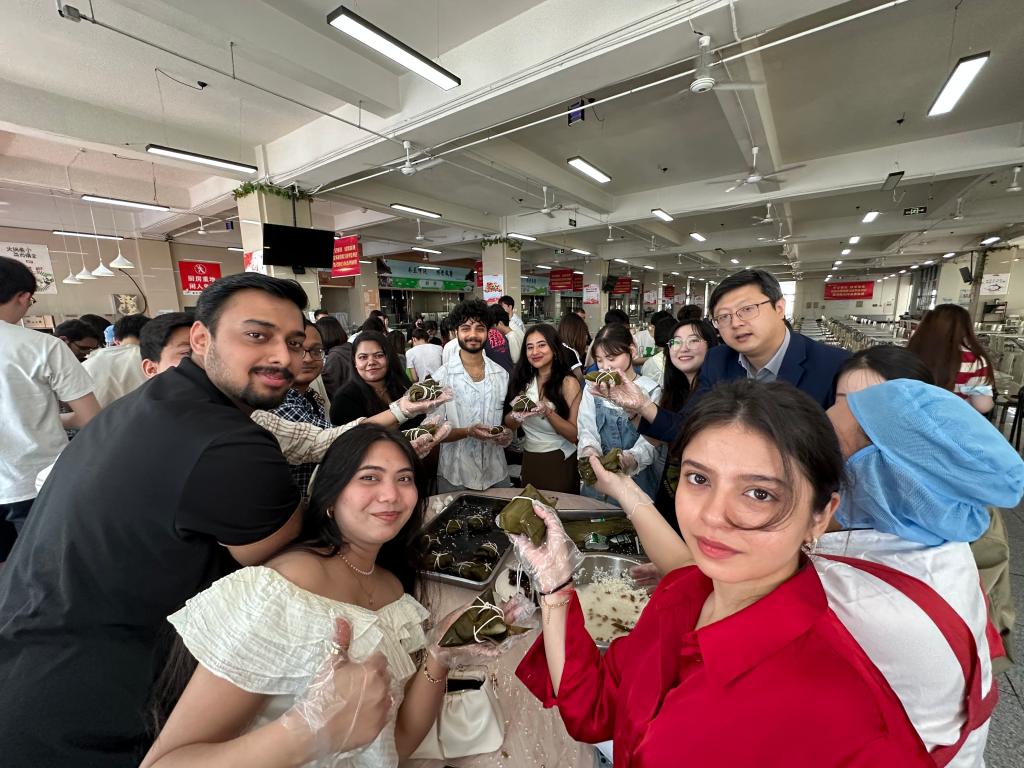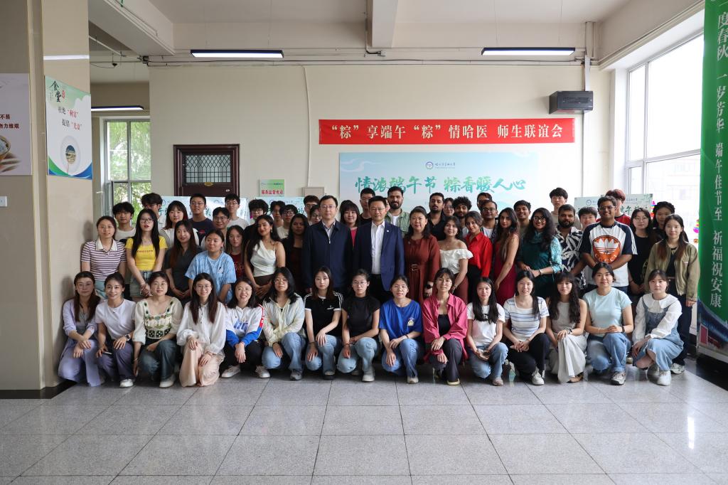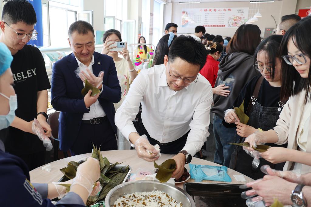将思念精致包裹,让味道与记忆重逢,端午将至,粽叶飘香,6月7日中午,校园服务保障部联合学生处、研究生院、国际教育学院在学生饮食服务中心举办“粽享端午,粽情哈医”师生联谊会,在校生代表与学校领导、辅导员一起包粽子,品粽子,粽子紧实好吃,软糯香甜,整个校园沉浸在一片欢乐和谐的节日氛围中。