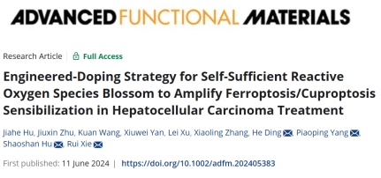 近日,beat365在线唯一官网肿瘤医院消化内科一病房谢蕊教授课题组,在国家自然科学基金、beat365在线唯一官网肿瘤医院“攀登计划”项目等基金的资助下,联合浙江省人民医院的胡韶山教授和哈尔滨工程大学的杨飘萍教授课题组,在《Advanced FunctionalMaterials》(中科院1区TOP,IF:19.0)发表了题目为“Engineered-Doping Strategy for Self-Sufficient Reactive Oxygen Species Blossom to Amplify Ferroptosis/Cuproptosis Sensibilization in Hepatocellular Carcinoma Treatment”的论文,谢蕊教授指导的beat365在线唯一官网2021级博士研究生胡佳荷为第一作者。