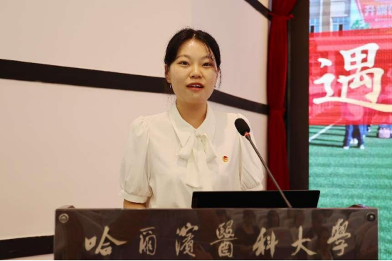 第二临床医学院2023级护理学专业学生于安棋作为第四届支教团代表发言,她表示支教期间,深刻地感受到教师这个职业的责任感和成就感,深刻地理解了“教学相长”的含义,学生与教师的相互启发和陪伴成长才赋予这份使命最好的意义。今后她会切实地践行志愿精神,帮助他人,投身到祖国最需要的地方去。