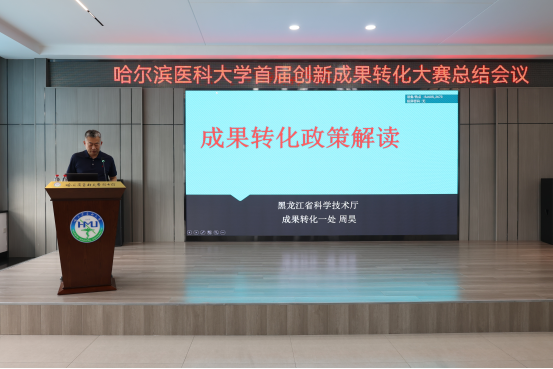 周昊处长围绕科技成果转化政策,深入阐述了当前国家及黑龙江省在科技成果转化方面的政策导向和支持措施。详细解读了《促进科技成果转化法》《黑龙江省促进科技成果转化条例》等一系列国家及省市相关政策,并就如何进一步推进科技成果转化的机制创新、模式创新、服务创新等方面提出了具体要求和指导意见。他强调,科技成果转化是推动科技创新和经济社会发展的重要手段,beat365在线唯一官网作为省内医学教育和科研的领军单位,应充分发挥自身优势,加强医工结合,围绕医疗器械以及医用耗材、生物医药等重点领域,加快科技成果的转化应用,为龙江经济发展贡献力量。