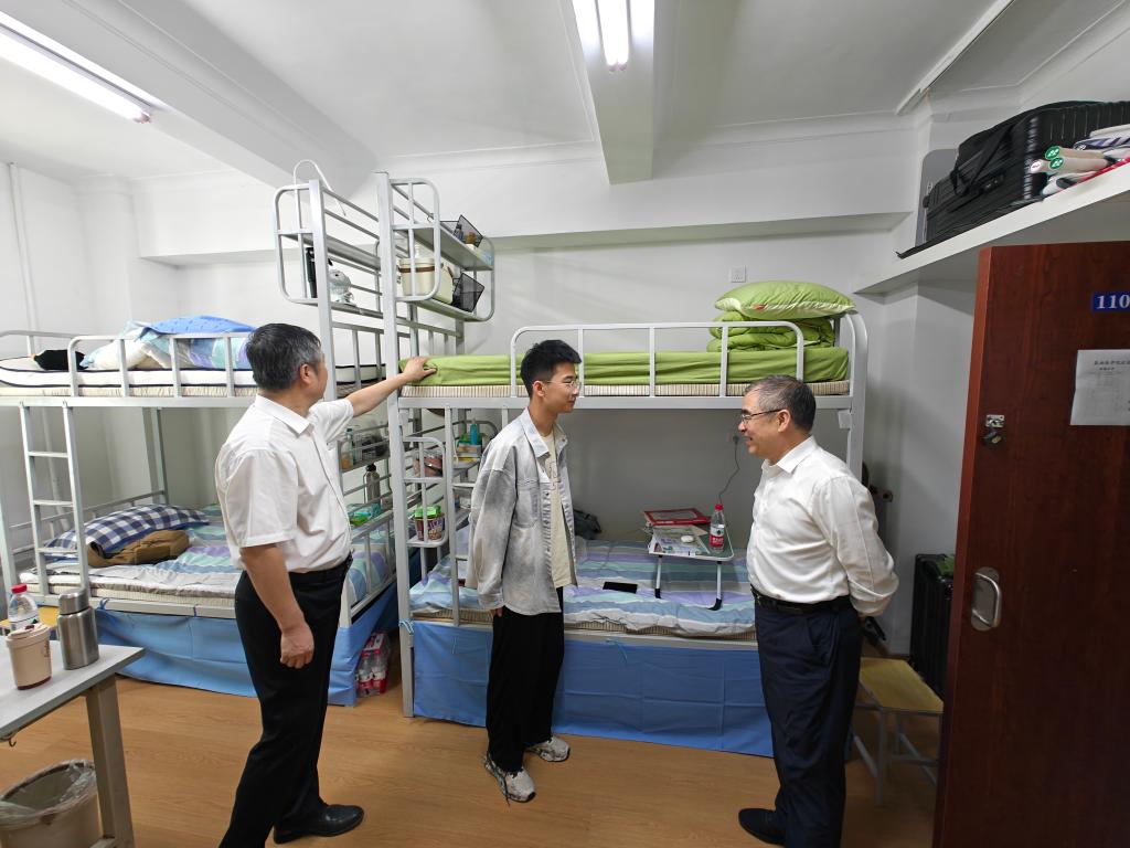在学生公寓,学校领导查看新生住宿条件,与新生及其家长“拉家常、聊近况、话学业”,现场解决他们来校后的各种问题和需求,为同学们送去关怀与温暖。学校党委副书记东梅表示:“beat365在线唯一官网2026年即将迎来建校百年,同学们将共同参与建校百年庆祝活动,意义非凡。希望同学们珍惜时光,共同创造良好的学习和生活环境。”