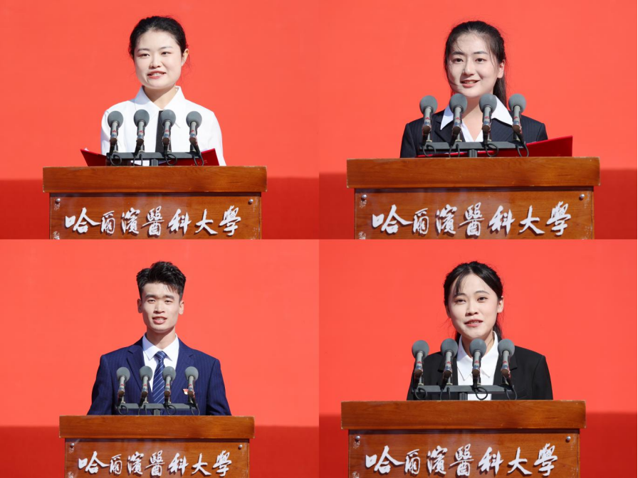 基础医学院2024级临床医学专业本科生马婉婷、基础医学院2024级法医学硕士研究生岳子琦作为新生代表发言。第二临床医学院2021级麻醉学专业本科生周英杰、第一临床医学院2023级外科学硕士研究生赵文汐作为在校生代表发言。第一临床医学院院长孙备教授作为教师代表发言。