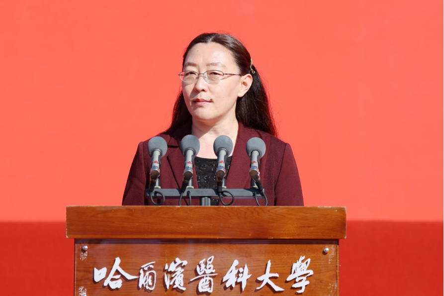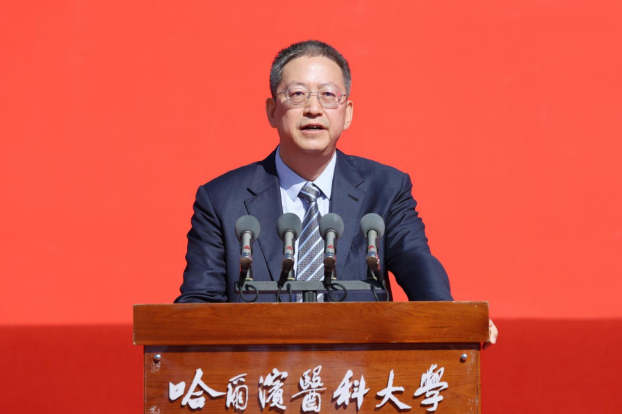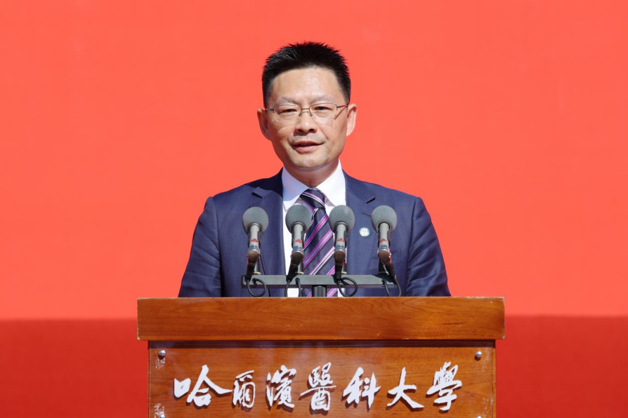 关于如何注重德行的培养和内在品格的塑造,如何在立德修身的过程中实现不负时代的人生价值,季勇提出几点期望。一要坚定理想信念,明大德以笃志。希望同学们立志听党话、跟党走,立志扎根人民、奉献国家,发扬“政治坚定、技术优良”光荣传统,传承哈医人医路报国的赤诚情怀,向英雄学习、向前辈学习、向榜样学习,要牢记无奋斗不青春,争做堪当民族复兴重任的时代新人。二要涵养厚重底蕴,守公德以弘业。希望同学们自觉树立和践行社会主义核心价值观,加强道德修养,明辨是非曲直,增强自我定力,理解并恪守医德医风医道,怀救苦之心、做苍生大医,树立起白衣天使的社会形象、维护好风清气正的行业氛围,矢志追求更有高度、更有境界、更有品位人生。三要擦亮鲜明底色,严私德以修身。希望同学们秉持“木直中绳、博学载医”的校训,永葆对医学的敬畏之心和对专业的赤诚之心,下真功夫、练真本事、求真名声,努力练就救死扶伤的道术、心中有爱的仁术、知识扎实的学术、本领过硬的技术、方法科学的艺术,成长为医德高尚、医术精湛的人民健康守护者。