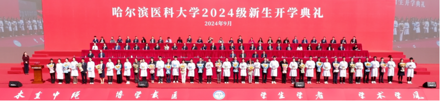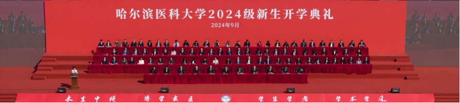 各院系书记、院长,各部办处、图书馆、地病中心、大庆校区负责人,教学督导代表;教师代表、全体本科新生、研究生新生代表、新生辅导员代表参加开学典礼。典礼仪式采取线上线下直播形式,场外新生及家长线上收看典礼盛况。