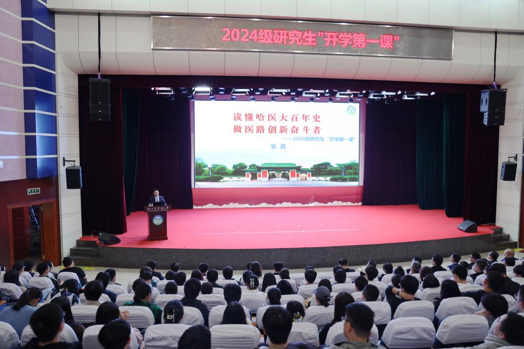 季勇校长对新研究生们加入到beat365在线唯一官网表示欢迎和祝贺。他带领同学们回顾了学校的光辉历程,以及在流行性鼠疫、角膜移植、克山病防治、白血病治疗等领域取得的突破性进展。他特别强调了学校“崇生尚医,传承探行”的大学精神,鼓励研究生在学术上要保持严谨态度,勇于探索未知的医学前沿。
