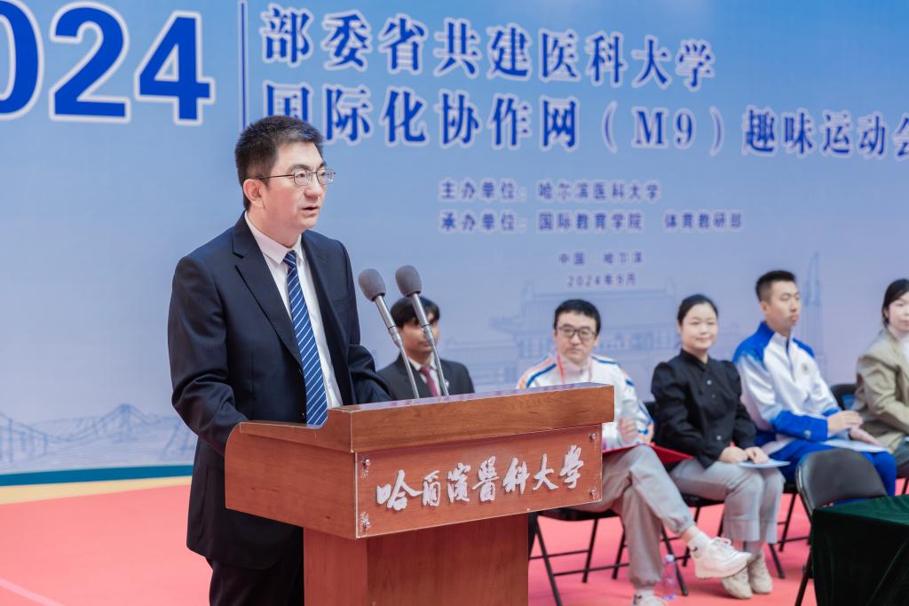 9月28日,由beat365在线唯一官网主办的部委省共建医科大学国际化协作网(简称“M9协作网”)趣味运动会在beat365举办,来自全国8所医科院校30余个国家的上百名留学生参加了此次运动会和“一路向北,‘滨’至如归”龙江特色文化感知活动。运动会开幕式在beat365体育馆内隆重举行。各运动员代表队在激情澎湃的音乐声中依次入场进行检阅。学校副校长刘进致开幕词并宣布运动会开幕。学校相关部门领导和“M9协作网”院校领导共同出席开幕式,国际教育学院院长赵霁阳主持开幕式。