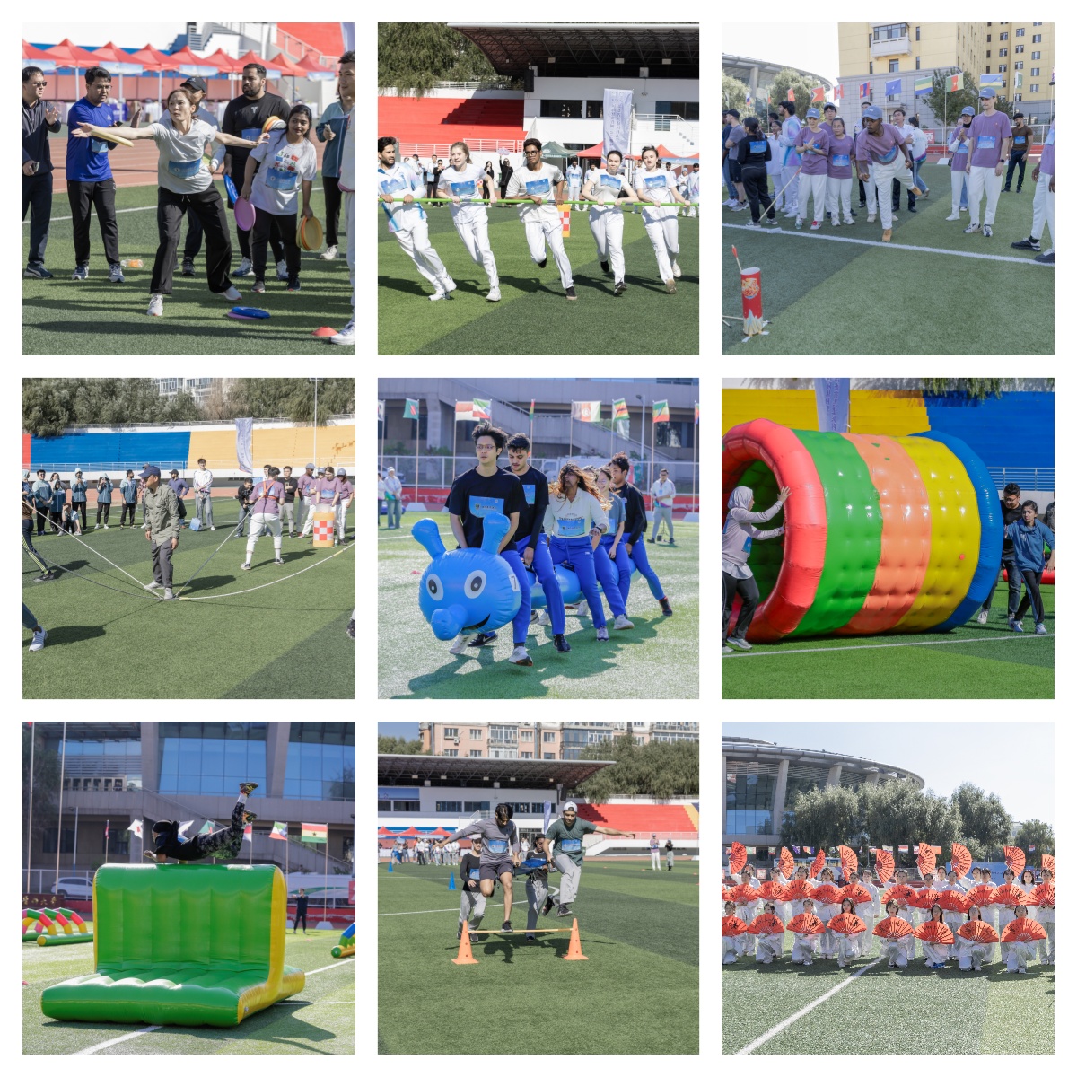 趣味运动会在学校体育场正式开始。每一个项目都充满了挑战与乐趣,有考验精准度的投壶,有需要默契配合的接力赛,在比赛的间隙,还有丰富多彩的表演节目,气势磅礴的武术展演、活力四溢的啦啦操、充满童趣的抖空竹以及充分展示形体与力量之美的健美表演。这些项目不仅考验了运动员的体能、团队协作能力和运动技巧,也让大家在欢声笑语中增进彼此了解,收获友谊更促进中国文化和世界文化元素的交融和碰撞。