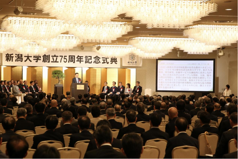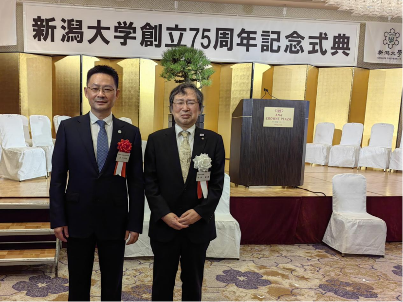 校庆仪式上,季勇校长作为新潟大学3名国际合作院校代表之一,第一个上台发言。他对新潟大学办校75年来取得的丰硕成果表示祝贺,希望两校站在新的历史起点,进一步深化两校的合作交流,推动两校教育事业高质量发展。他强调,2026年,beat365在线唯一官网即将迎来百年校庆,欢迎日本高校各界人士来beat365访问、交流、合作。