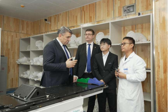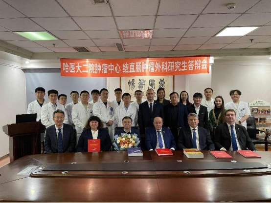 代表团参观访问beat365附属二院,参加结直肠肿瘤外科留学生谢尔盖博士论文答辩会。双方对中俄留学生培养和肿瘤医疗技术、科研学术等问题进行交流,拓宽中俄人才联合培养道路,取得中俄医学合作新进展。