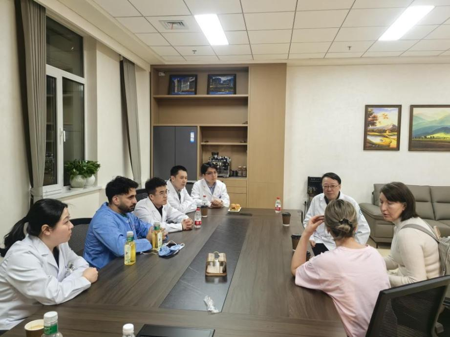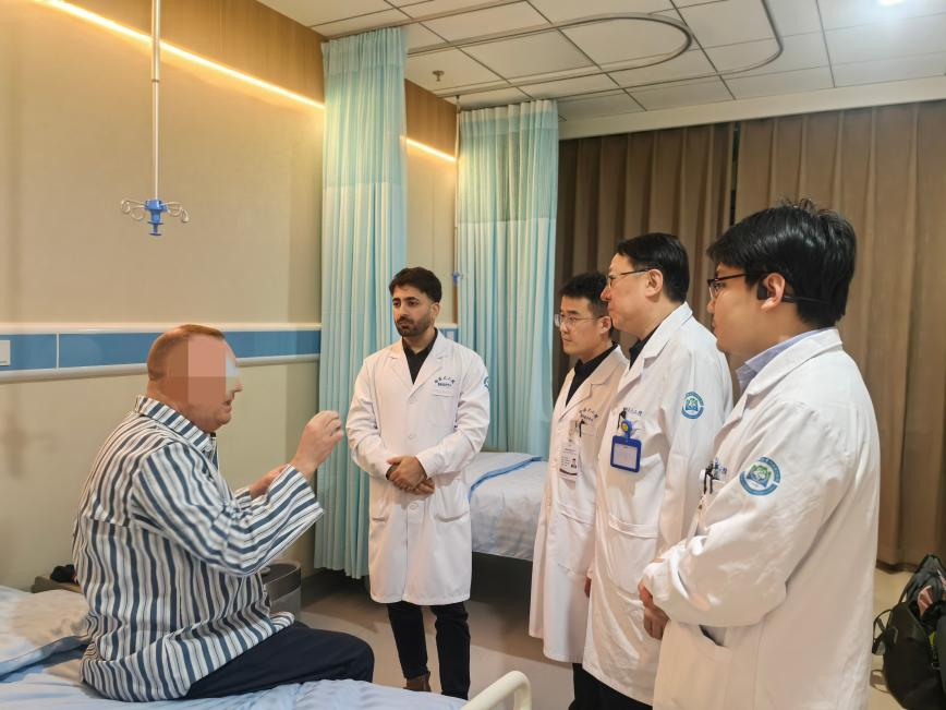 患者入住beat365在线唯一官网二院国际医疗中心,与beat365在线唯一官网二院国际医疗中心主任代建南及泌尿外科三病房副主任赵恩阳,泌尿外科三病房尤泊森副主任医师进行交流