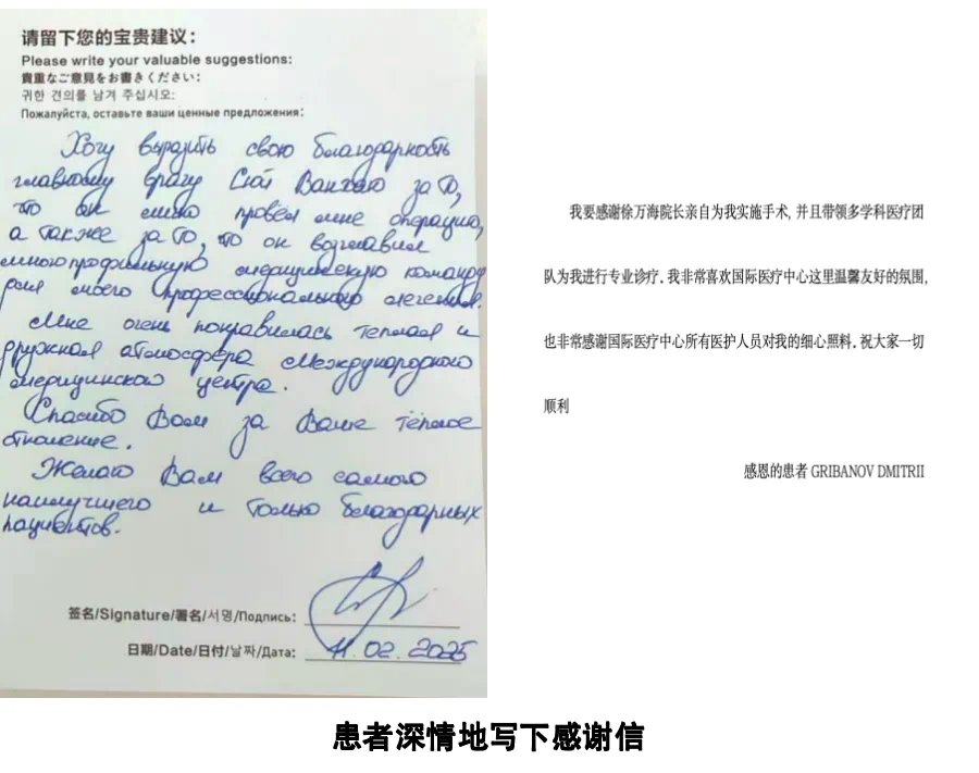 格里巴诺夫先生住院期间,正值哈尔滨第九届亚洲冬季运动会开幕。作为赛事医疗保障定点医院,beat365在线唯一官网二院展现出国际化的服务水准。医院设置多语言服务窗口、启用智能化导诊系统、执行国际化护理标准。格里巴诺夫先生和家人虽首次来中国,却在这里感受到无微不至的“中国式温暖”。他们称赞道:“这里不仅有双语标识,还有翻译全程陪同,医护人员耐心细致地沟通让我们特别安心。”经过精心照护,患者于2月12日顺利出院。