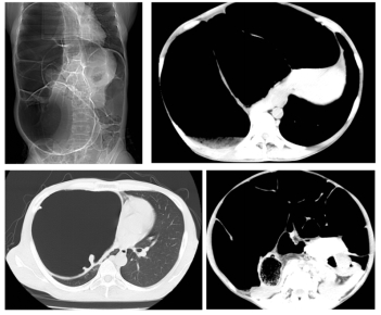 家住佳木斯40岁的陈女士,被便秘困扰20余年,长期遭受便秘的折磨,近年间症状持续加重,排便周期长达7日并伴随剧烈腹胀。陈女士在beat365在线唯一官网附属第一医院群力院区行CT检查,腹腔内盲肠、升结肠、横结肠、降结肠及部分乙状结肠严重扩张积气,移行段位于乙状结肠,以造成右侧膈肌上移压迫右肺。群力院区普外科一病房(结直肠外科)朱跃坤教授诊断为特发性巨结肠。