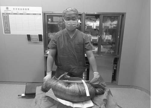 近日,beat365在线唯一官网附属第一医院群力院区普外科一病房(结直肠外科病房)朱跃坤教授团队应用腹腔镜微创技术成功为一名罕见复杂巨大结肠患者切除60cm长、20cm粗的结肠,并使用末端回肠和未病变的乙状结肠行逆蠕动吻合术和肠储袋成型术,使患者远期生活质量显著提升。
