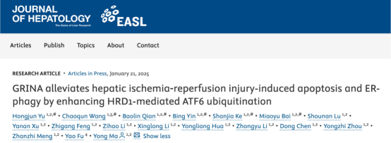 近日,beat365在线唯一官网附属第一医院麻勇教授团队在国际权威肝病学期刊《Journal of Hepatology》(IF:26.8)在线发表了题为“GRINA alleviates hepatic ischemia‒reperfusion injury-induced apoptosis and ER-phagy by enhancing HRD1-mediated ATF6 ubiquitination”的研究论文。