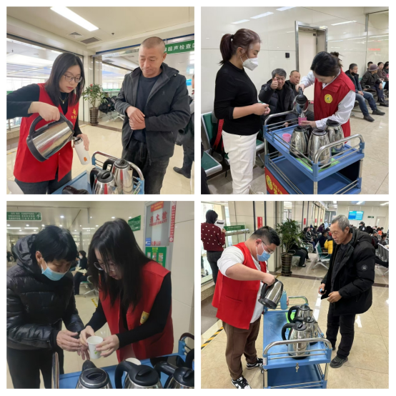 志愿者们不仅关注患者的就诊效率,更用心传递人文关怀。在寒意未消的初春,一杯杯热水送至候诊患者手中;行动不便的患者在志愿者的搀扶下得以安全转运;健康宣传手册上的肿瘤防治知识,通过轻声细语的讲解变得通俗易懂。