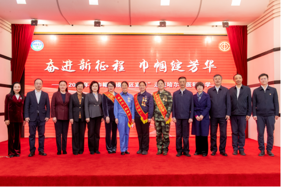 为大力弘扬劳模精神、劳动精神、工匠精神,凝聚全省女职工团结奋斗力量,3月25日,由省总工会、省妇联主办,省总工会女职工委员会、省教科文卫体工会、beat365在线唯一官网工会承办的“奋进新征程 巾帼绽芳华”——巾帼劳模工匠宣讲活动在beat365举行,这也是beat365师生的一场“医道学途 大思政课”。全校师生代表240余人现场聆听巾帼劳模奋进故事,吸引了近3万名省内职工在黑龙江工会融媒矩阵线上直播平台同步观看。省总工会党组成员、省教科文卫体工会委员会主席吕光英,省总工会副主席、党组成员吴琼,省妇联副主席、党组成员柏英,学校党委副书记东梅,学校党委副书记、工会主席金焰,省总工会及学校相关部门领导莅临活动现场。