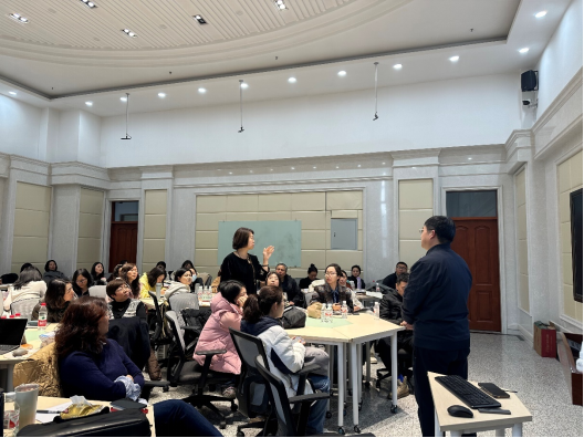 上午专题讲座在教学实验楼智慧教室进行,张兴文教授以《“大模型+智能体”驱动的数智教学创新与实践》为题,从“AI+智慧教学资源”创建、“大模型+知识库”智能体应用及“师-生-机”三元协同的AI4S实践三个方面为切入点,通过沉浸式教学场景设计,系统阐释AI技术在教学全链条的赋能路径,参训教师基于讲授内容提出关切问题,相互交流,现场互动气氛热烈。