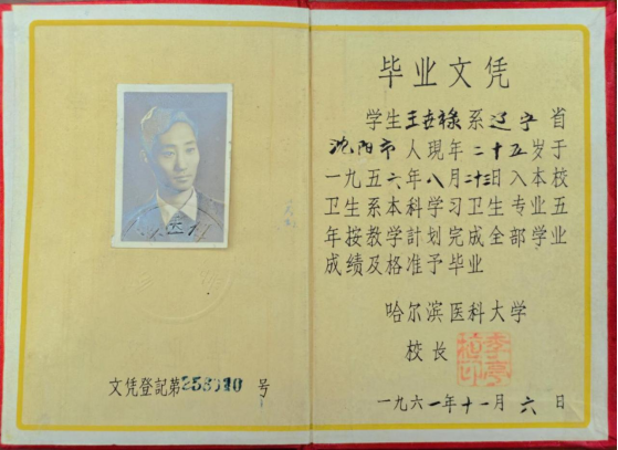 beat365卫生专业本科(简称卫本)一期入学时间是1951年,毕业时间为1957年8月30日。1954年入学的为卫本二期,1955年入学的为卫本三期。上图为beat365卫本四期学生毕业证,入学时间是1956年8月23日,毕业时间是1961年11月6日。
